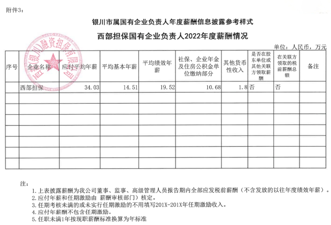 西部(銀川)融資擔(dān)保有限公司企業(yè)負(fù)責(zé)人2022年度薪酬情況