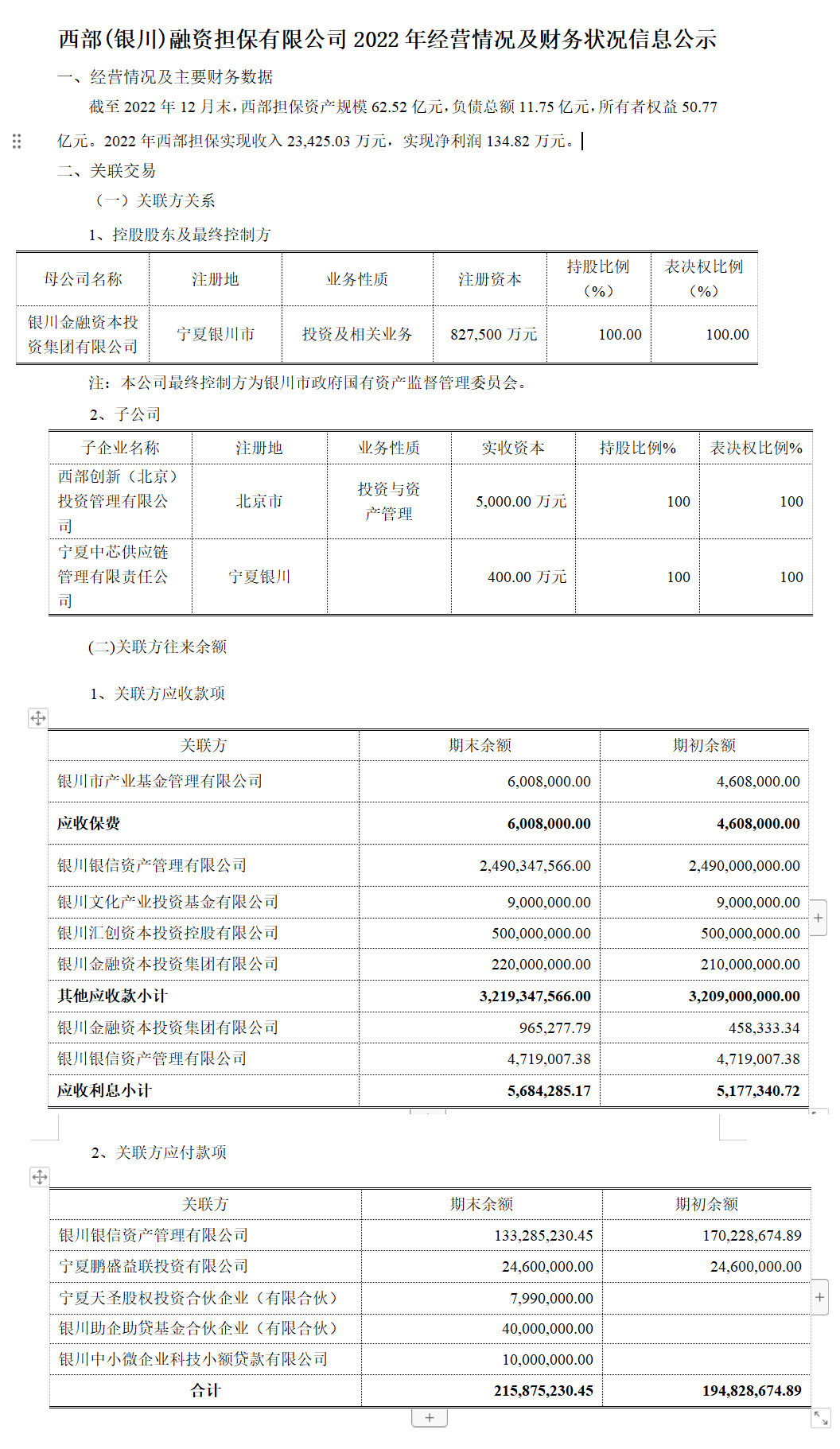 西部擔保2022年經(jīng)營情況及財務狀況信息公示